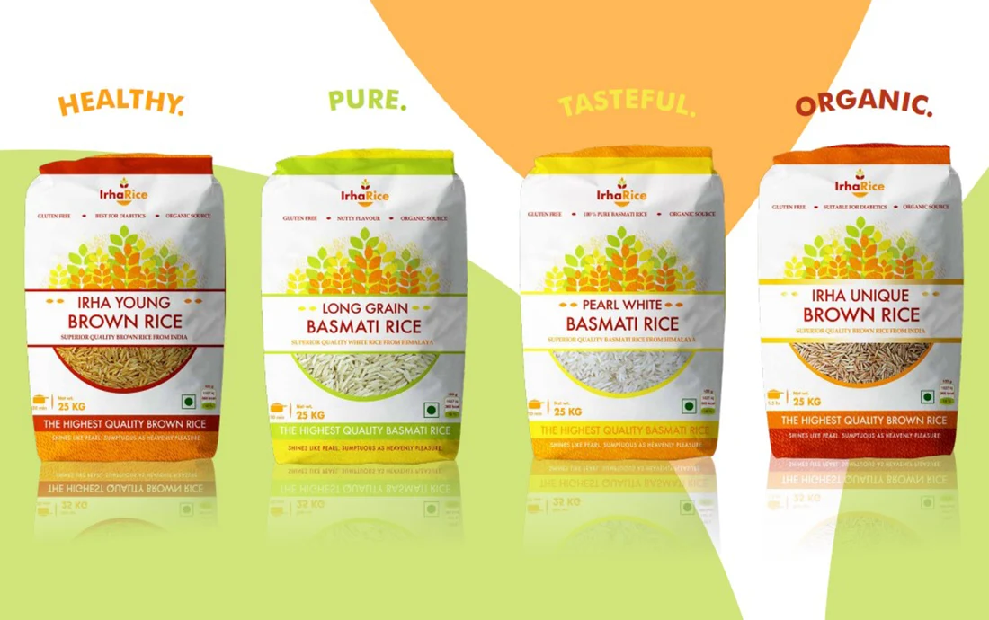 ‘Irha Rice’ was born; the premium offering of RRM. The logo reflects RRM’s centuries old fertile soil (something they are very proud about) and the premiumness of Irha growing for future generations. Everything including brand logo, font, colors were carefully selected to align with the brand positioning.